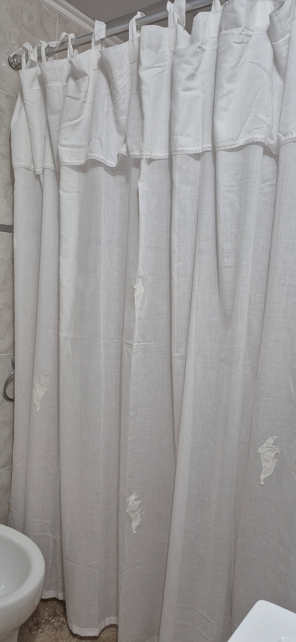 Nuestra cortina de baño está confeccionada en gasa de alta calidad, una tela liviana con terminaciones delicadas. Cada modelo incluye detalles únicos (puntillas / encajes / apliques), lo que la convierte en una pieza decorativa que aporta estilo y personalidad a tu baño.