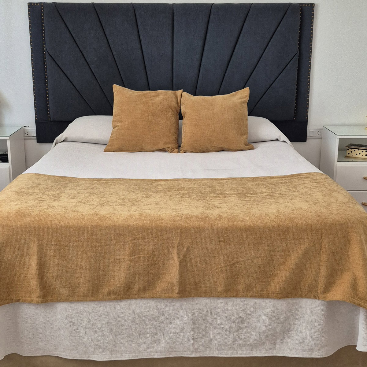 Dale un toque elegante y cálido a tu cama con este set de pie de cama en tela chenille, suave y de textura aterciopelada.